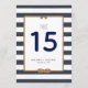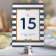 La conception moderne de l'événement nautique / numéro de table mariage de Nautical Boutique Co. comprend une corde attachée à un noeud à l'infini et une typographie de bloc traditionnelle associée à une typographie manuscrite moderne. Le design est mis sur un arrière - plan d'aquarelle assorti aux rayures bleu marine et blanc. #Nautique #MariageCôtier #Mariage #MariagePlage