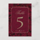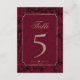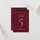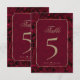 Numéros élégants de table de mariage dans un style plus formel avec une disposition classique de cadres en or et texte avec une bordure en cachemire ornée. Cet exemple ajoute une touche moderne avec son arrière - plan dans le cachemire bordeaux profond. Ajoutez vos noms et votre date de mariage dans une police serif pour son appel traditionnel. Recherchez ID767 pour voir d'autres choix de couleurs pour cette conception.