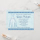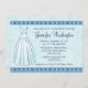 Cette invitation nuptiale de douche est une couleur de bleus layette avec des accents bleus plus foncés. Il y a une frontière mignonne qui est sur le dessus et le bas, un bel arrière - plan tourbillonnant avec une robe de mariage. Vous pouvez facilement personnaliser cet invitation avec votre information pour la partie.