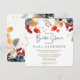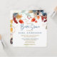 Célébrez la future mariée avec cette magnifique invitation à la douche nuptiale, avec une belle aquarelle design floral. Les tons riches et terreux de bordeaux foncé, de jaune doré, de pêche douce et d'ambre chaud se mélangent à des touches délicates pour créer une atmosphère charmante et confortable. Les fleurs vibrantes encadrent délicatement les bords de l'invitation, ajoutant une touche d'élégance saisonnière sans accabler le design.