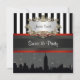 NY City Skyline Silhouette, Dark Starry Sky, Black & White Stripe Invitation Collection - Sweet sixteen Party Invitation personnalisable Invitations et accessoires avec une vue silhouette iconique de la ville de New York avec Emp St Building le Chrysler Building contre un ciel étoilé foncé. Elles disposent également d'un motif rayé noir et blanc, d'un ruban rouge et noir et d'un étiquette à dégradé blanc avec le choix d'un cadre de look argent ou or. Ce produit fait partie d'une suite de conceptions assorties qui sont facilement personnalisables pour de nombreuses occasions et événements. Si vous avez besoin de cartes RSVP assorties, notes de remerciements, timbres, magnets ou autres accessoires, veuillez consulter nos autres annonces. 2012 ©NYCisMyMuse Tous droits réservés