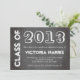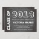 Rendez un faire-part d'obtention du diplôme de hors concours avec ceci facile de customiser la carte d'invitation. L'année et le nom de la classe du diplômé est placée sur un fond gris de tableau. Personnalisé lui avec votre information d'obtention du diplôme.
