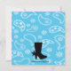 Yee-Haw !!! Il y a un bébé en route !! Commencez votre fête avec cette adorable invitation au baby shower. Idéal pour le thème cowboy/western. Il possède un arrière - plan à caractères occidentaux blancs et bleus. Il y a un cadre tourbillon noir avec de petites étoiles dessus. A l'intérieur, c'est là que vous personnalisez avec vos informations personnelles. Sur le côté gauche, on peut voir une jolie silhouette d'une cow-girl enceinte. Elle porte un casquette, une robe et des bottes de cow-boy bleues. Consultez les autres designs et produits que nous offrons. ©Illustrations JW