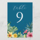Ces fleurs tropicales modernes et élégantes d'aquarelle bleu océanique avec des numéros de table verts sont parfaites pour toutes les célébrations. Conçu par Thisisnotme©