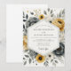 A moody and romantic composition featuring muted ochre blossoms and deep grey foliage. Delicate floral accents evoke an ethereal and sophisticated atmosphere. Perfect for an elegant gathering.