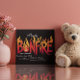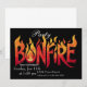 Une illustration numérique d'une invitation à une fête de remise des diplômes Flammes de feu de joie Un dessin graphique présentant le mot feu de joie rendu en lettres enflammées et grasses.