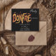 Une illustration numérique d'une invitation de fête de remise de diplôme de feu de joie rendue dans un style orange et jaune ardent, ressemblant à des flammes.