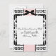 Le noir et le blanc donnent le ton de cette élégante invitation à la fête, avec un arc noir sur une bande rose et un motif baroque noir et blanc sur les bords. Customisez le texte à l'avant et à l'arrière de cette carte pour le personnaliser.