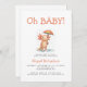 This cute baby shower invitation features a watercolor axolotl holding an umbrella in the rain, below the words "Oh BABY!" in orange hand printing font. Personalize the text with the name of the mom-to-be in orange and the details in charcoal gray sans serif font. The reverse side provides space for diaper raffle, books for baby, and registry details, along with a convenient QR code guests can scan to visit the registry.