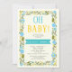 Invitation Oh Baby shower aqua et bordure fleurie jaune
