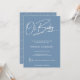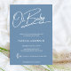 Oh bébé script moderne calligraphie baby shower bleu poussiéreux minimaliste simple invitation modèle.