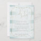 Invitation baby shower | OH Bébé ! Calligraphie Ombré Turquoise Blue Stripes donnent un aspect opalescent avec une équerre dorée transparente pour les détails du baby shower - coins de très vert vert clair feuilles botaniques et baies - OH Baby! la calligraphie de script fantaisie en or comme la fine bordure du support central. Tout le texte facile à customiser