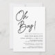 Célébrez votre petit avec ces simples invitations pour la douche bébé avec "Oh garçon !" en caractères noirs sur un arrière - plan blanc propre. Personnalisez avec le nom de la mère et les détails de la douche, tandis que l'envers affiche votre photo de grossesse et le texte personnalisé. Parfaites pour les baby showers garçons, ces invitations en noir et blanc créent un look moderne et minimaliste qui fonctionne avec n'importe quel thème de fête. Des options de personnalisation complètes font de ces élégants invitations de baby showers le faire-part idéal pour votre célébration spéciale.