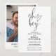 Cette invitation de baby shower de script élégant en noir et blanc peut être personnalisée avec toutes vos informations spéciales de célébration et photo spéciale au verso. Conçu par Thisisnotme©