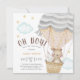 Cute Oh Boy For A Boy Woodland Balloon Teddy Bear Baby shower Invitation Bienvenue au nouveau petit paquet avec cette amusante invitation à thème en montgolfière d'animal de bois.