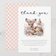 Oh Deer ! Pink Floral Baby shower Merci Invitation inclut remerciement qui peut facilement être changé. Le dos du merci est rose et blanc en vichy.