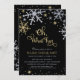 Festive mais formelle fête de Noël ou fête de la Saint-Sylvestre conception de l'invitation de la fête comprend des flocons de neige en argent et en or brillants et "Oh, What Fun" dans l'écriture, et le libellé qui peut être personnalisé pour votre événement spécial. La bordure et le script du flocon de neige ont une parties scintillant texturée qui ressemble à un arrière - plan noir.