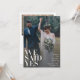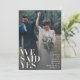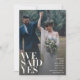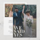 Cette annonce de mariage noir et blanc est un excellent moyen de faire savoir à vos amis et à votre famille que vous vous êtes enfuis, que vous avez eu une cérémonie secrète ou un mariage intime, et que vous souhaitez le célébrer avec eux ! La face avant de la carte est conçue pour mettre en valeur votre photo préférée en orientation verticale, avec les mots "Nous avons dit oui" en bas à gauche dans une typographie de magazine de mode élégante et intemporelle en blanc mat. Vos noms, date et lieu de mariage apparaissent en bas à droite dans une police sans serif moderne et élégante. Le verso de la carte vous permet de saisir votre date et lieu de mariage, et de personnaliser la carte avec toutes les informations pertinentes sur la réception de mariage. Il comporte également une deuxième photo de mariage, cette fois une image horizontale. Il s'agit d'un modèle de conception, très facile à personnaliser pour répondre à vos besoins. NOTE DU CRÉATEUR : Le "sur-pli en vélin" sur ce produit est un effet numérique. Contactez le concepteur pour des produits assortis. Copyright Anastasia