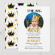 Célébrez votre petit roi en style avec cette invitation photo pour le premier anniversaire de The Notorious ONE. Avec des accents noirs et dorés gras, des couronnes royales, des chaînes en or, des étoiles et un design moderne inspiré du hip-hop, cette invitation est parfaite pour une fête d'anniversaire amusante et stylée. La mise en page photo personnalisable rend cela encore plus spécial, mettant en avant votre garçon d'anniversaire en tant que véritable VIP de la journée.