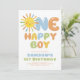 One Happy Boy! A bright and colorful sun themed boys 1st birthday invitation in blue, orange, yellow and green. Available in other colors.