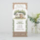 This adorable design features a sweet bear relaxing by a camper surrounded by soft woodland trees, creating a warm and nature-inspired atmosphere. The “Admit One” ticket layout adds a fun and unique touch that makes the invitation feel like a special event pass.