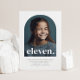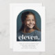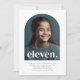 Une simple invitation de 11ème anniversaire avec votre propre photo en forme d'arc et les mots "onze." au-dessus.