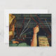 Cliquez sur le bouton "personnaliser" pour accéder aux outils de conception pour changer la couleur arrière - plan et ajouter votre propre texte personnalisé ! De nombreux styles de polices à choisir ! Illustration vintage conception rétro des communications d'affaires avec un opérateur de standard pour femmes connectant les appels téléphoniques avec des fils sur son plateau. Une organisatrice carte de visite à l'ancienne est sur son bureau.