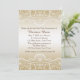 Une jolie invitation avec un dégradé d'or arrière - plan et magnifiquement détaillée dentelle haut et bas accent. Il y a une petite croix blanche placée à l'intérieur de la bordure en dentelle supérieure. Présenté comme une invitation à la première communion, mais peut être customisé pour toute célébration religieuse. Coordonner les éléments disponibles. (Il n'y a pas de véritable dentelle sur l'invitation - il imprime à plat.