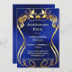 Invitation d'anniversaire élégante personnalisable bleu et or.