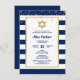 Invitation Or Bleu Navy Rayures & Étoile de David | Bar Mitzv