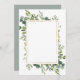 Cette invitation vierge présente une végétation d'eucalyptus peinte à l'aquarelle, des feuilles vertes et un cadre rectangulaire doré faux.