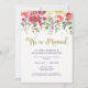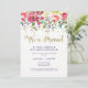 Ces jolies invitations de cérémonie de mariage après la cérémonie présentent un joli design aquarelle floral rose, violet et vert, avec un faux confetti doré et une typographie.