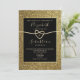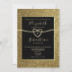 Parties scintillant simple, moderne, élégant or et faire-part de mariage noir avec coeur de corde romantique et script de calligraphie moderne.