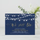 Célébrez votre jour spécial avec ce modèle d'invitation de fête d'anniversaire moderne et élégant. Ce design présente un script doré "Nous sommes toujours là" avec de belles guirlandes lumineuses sur un fond bleu marine. Cette invitation sera un excellent choix pour un anniversaire de mariage ou une cérémonie de renouvellement de vœux.