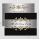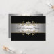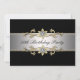 Invitation élégante noire, argentée, dorée et diamantée à motif floral en spirale pour les cinquante ans d'une femme. Taille 5x7.