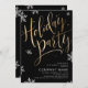 Célébrez la saison avec cette élégante invitation de fête de Noël, présente de gros faux feuille d'or calligraphie manuscrite et des flocons de neige sur riche arrière - plan noir, moderne et élégant. Grandes invitations pour la fête annuelle de vacances, la famille ou la fête de Noël d'entreprise.