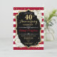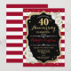 Invitation de fête d'anniversaire de mariage rubis rouge 40 ans. Carte d'invitation élégante rouge, noire et blanche avec dorure scintillante. Caractéristiques rayures stylées, police de caractères script et roses blanches. Parfait pour une célébration de 40 ans d'anniversaire de mariage.
