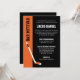Une invitation Bar Mitzvah sur le thème du hockey moderne avec un bâton de hockey en orange et noir. Cet invitation sportif unique est facile à personnaliser en utilisant les outils de modèle en ligne.