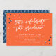 Amis Invitations et famille à votre fête de remise de diplômes avec cette invitation élégante avec les mots "Fêtons le diplômé" dans un script de brosse blanche tendance contre un arrière - plan orange avec confettis blanc et bleu éparpillés dans les coins. La carte a un motif abstrait bleu et blanc à l'arrière. Personnalisez-le en remplaçant le texte de l'espace réservé. Pour plus d'options comme changer la police et sa taille/couleur ou l'espacement entre les lettres cliquez sur le bouton "Personnaliser". *Veuillez noter que le filigrane Zazzle qui apparaît dans l'aperçu du zoom n'apparaîtra PAS sur le produit imprimé final © Rosewood et Citrus
