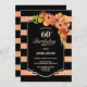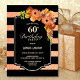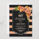 Invitation à la fête du 60e anniversaire de corail rayé noir et faux parties scintillant.