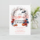 Make your Halloween party unforgettable with this fun, colorful, and fully themed invitation. The design features a decorative arch with dried chrysanthemums in red, dark blue, and black, accompanied by pumpkins, ghosts, bats, and spiders, creating a festive and playful atmosphere.