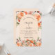 Pour une mariage élégante et romantique. Un arrière - plan de couleur pêche douce décoré de fleurs orange, pêche et rose. Cadre en arc. Personnalisez et ajoutez vos noms et détails. Dos : couleur pêche.