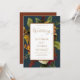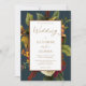 Un bouquet de fleurs éthérées dans les tons blanc, or, orange et rouge foncé avec verdure sur un panneau blanc, doré et orange rouillé bordé d'un turquoise foncé invitation vos invités à ce qui est sûr d'être un moment rustique "Mariage" élégant et mémorable. L'arrière est orangé d'un arrière - plan rouillé foncé. Ajoutez simplement vos noms et les détails du mariage à compléter. Conception composite par Holiday Hearts Designs (droits réservés).