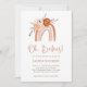 Ces adorables invitations de douches pour bébés pour les mères de jumeaux ou de triplets présentent un style boho tendance et un script manuscrit branché qui dit "oh babies !". Un arc-en-ciel peint en terre cuite et neutre est orné de fleurs d'eau de pêche et d'orange sur un arrière - plan blanc simple.