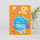 Célébrez un anniversaire pour les jumeaux avec un éclat ! Cette invitation comprend des articles de billard (lunettes, maillot de bain, tongs, ballon, maillots de bain et chars) qui entourent une goutte d'eau. À l'intérieur de la goutte d'eau sont les détails de l'invitation.