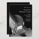 Invitation tes amis, ta famille et tes invités pour voir ta prestation symphonique avec l'élégant Classical Violin Orchestra Considérant Invitation. Cette élégante invitation à un concert personnalisé présente une photo en noir et blanc d'un instrument à cordes de violon en bois avec un arrière - plan noir. Disponible sous forme d'invitation imprimée à l'envoi ou en téléchargement numérique pour un partage numériquement en ligne facile.
