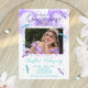 L'orchidée d'aquarelle violette est belle comme un arrière - plan sur vos élégantes invitations quinceanera violet et turquoise. Des libellules blanches et turquoise entourent votre photo et script quinceanera information de fête. Cette carte est idéale pour les soirées quinceanera du printemps ou de l'été. Les couleurs sont polyvalentes pour les couleurs violet, lavande ou lilas. Et l'oeuvre fleurie violette est belle avec des thèmes cyan, aqua, aquamarine fête.