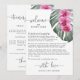 Cette carte de bienvenue personnalisée permet de souhaiter la bienvenue à vos invités à un mariage à destination ou à des festivités de week-end. Le modèle de texte comporte un texte de remplacement pour inclure un message de remerciement ainsi que des activités et des horaires pour le week-end. Une feuille de Monstera colorée avec des orchidées roses vives orne le coin supérieur du design pour ajouter une touche tropicale. Personnalisez le texte comme vous le souhaitez avec vos détails spécifiques. Vous pouvez ajouter ou supprimer des lignes de texte selon vos besoins. Pour déplacer le texte ou en ajouter davantage, choisissez "personnaliser davantage" en bas du modèle de conception.