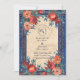 Un design de mariage vintage richement détaillé, encadré de grenades vibrantes, de fleurs fleuries et de feuillage luxuriant dans des tons de bijoux profonds. La frontière botanique ornée crée une atmosphère cossue et ancienne, idéale pour des fêtes romantiques, de jardin ou d'inspiration méditerranéenne.