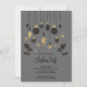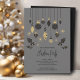 Des ornements d'arbres de Noël noirs et dorés, des saints et des baies sur un arrière - plan gris mettent en valeur ces invitations de fêtes avec vos détails en lettres chic. Idéal pour vos fêtes personnelles ou professionnelles. Commandez des invitations INSTANT DOWNLOAD et/ou IMPRIMANTES.
